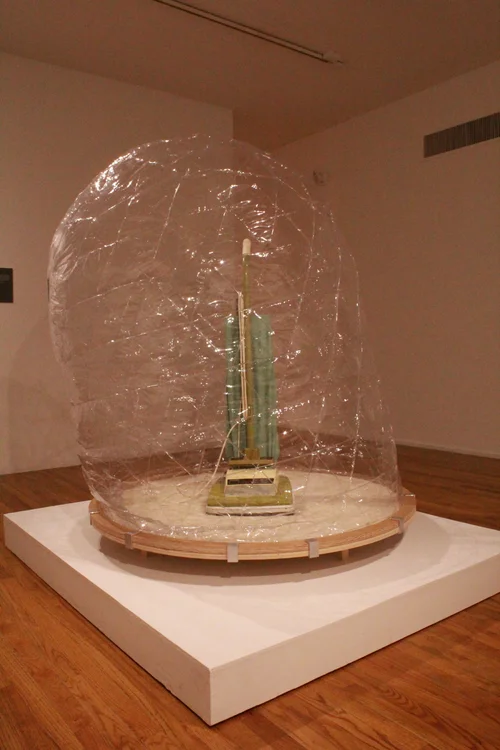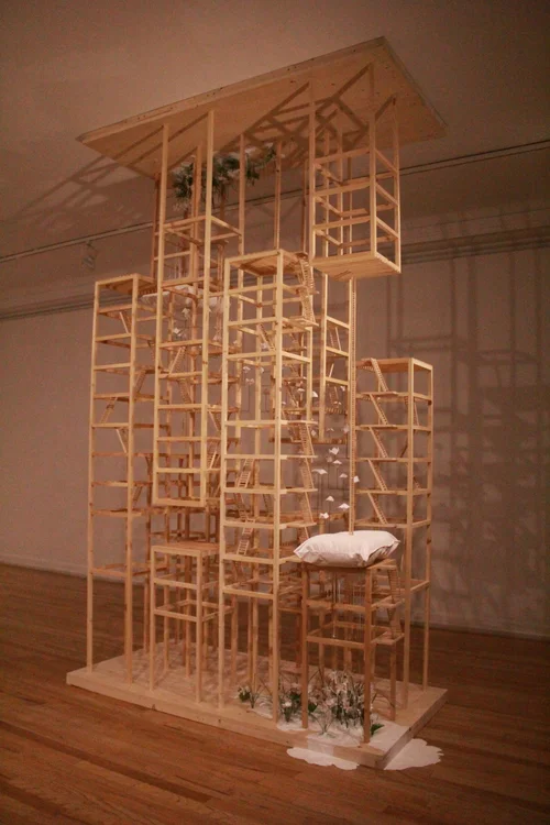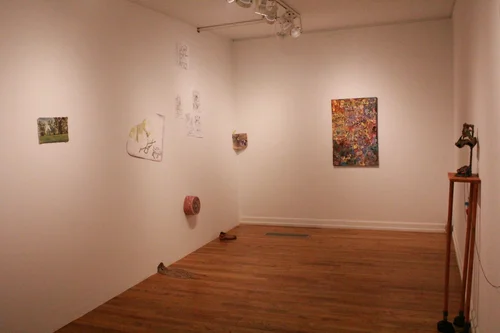As one component of the collaboration with three other institutions, I have selected a spectrum of artists with a focus on installation as an exhibition approach. Even though the artworks were selected as a survey, threads of commonality can be seen throughout the exhibit from material usage, plays on personal mythologies, themes of reconstitution, mood of color and contrast to, and most predominately, reciprocity of the pieces and the architecture.